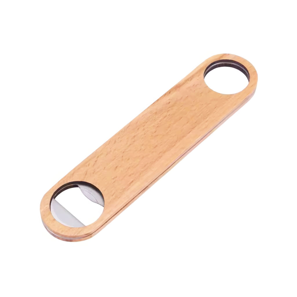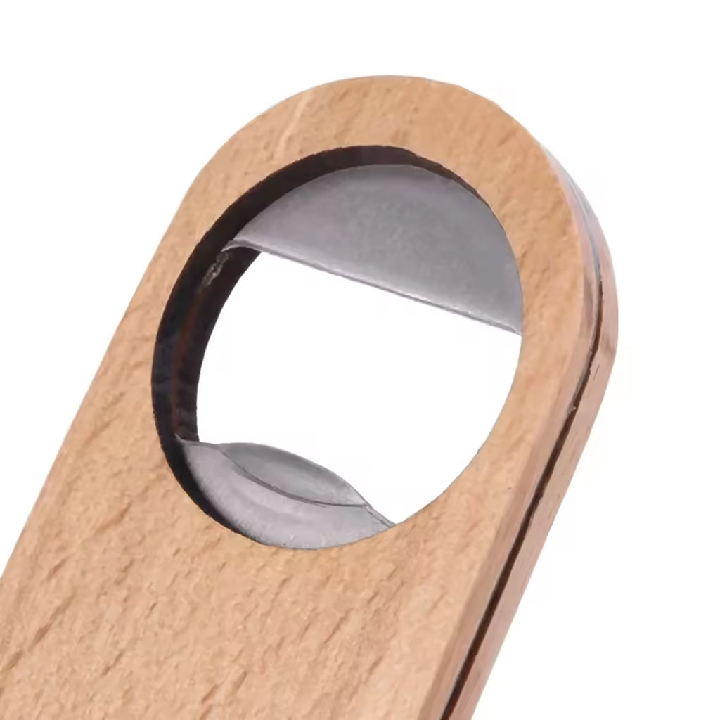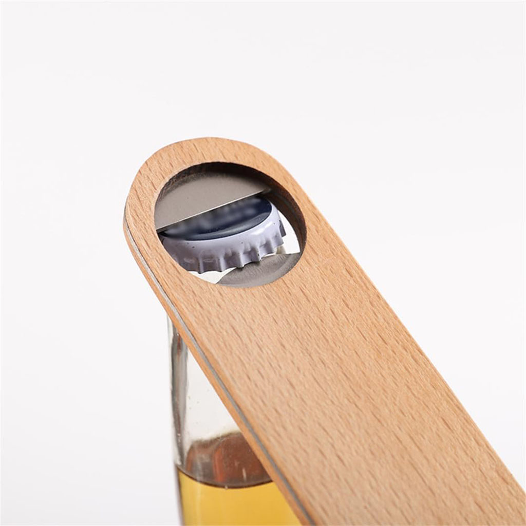 Oblong-shaped Bottle Opener with Wooden Handle includes the following features :