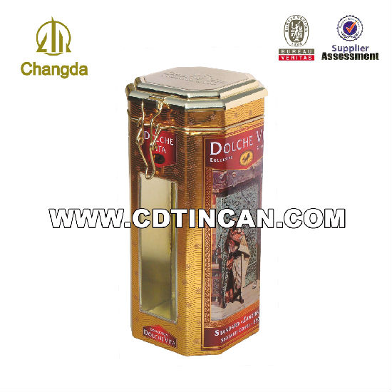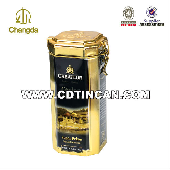 Octagon Tea Tin Can With Plastic Lid & Wire Ring