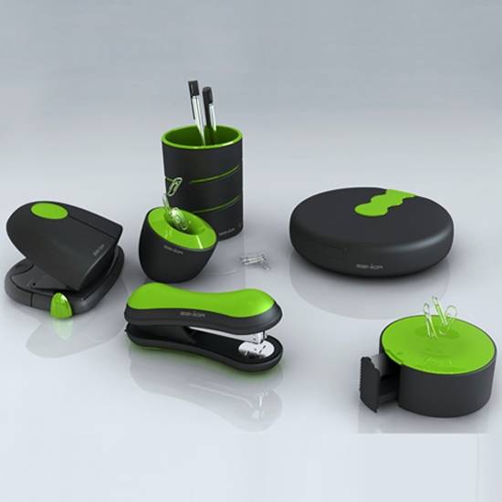This innovative stationery set includes a pen holder, clip holder, chop and tape holder, stapler, punch, and CD holder, all large enough to sit prominently on your desk. It comes in charcoal and green colors which match perfectly to give an eye-catching appearance. With this modern and functional stationery set, your office essentials will never fall out of place.