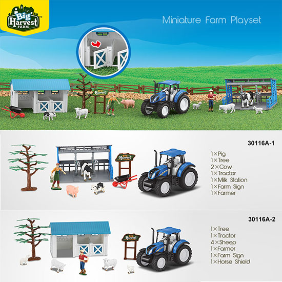 set of 1: 1 tractor, 1 house, 1 farmer, 4 sheep, 1 tree, 1 farm sign