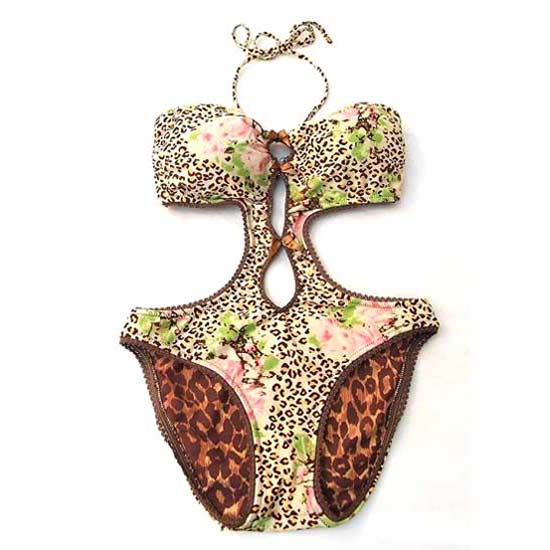The featured swimwear has a one-piece cut with a halter-neck. Floral patterns blended with animal graphics exude a sophisticated style. Ladies in this fancy swimsuit will look exceptionally fabulous.