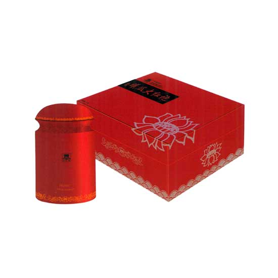 This Da Hong Pao oolong tea adopts selected tea leaves to ensure a unique and fine taste. It presents a bright and deep-colored tea soup after being brewed in hot water. A delicate cylindrical canister and a gift box in red are used to complement the look.