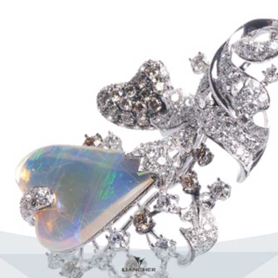 - Material: 18K gold, 3.46ct opal x 1, 1.28ct round diamond x 86 and 0.61ct fancy diamond x 32.