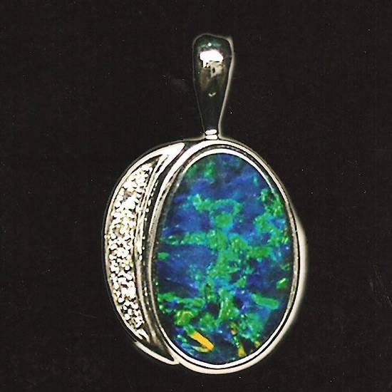 This is an opal pendant that is encased in a simple silver setting with a hammered finish on one side. This allows the opal to shine brilliantly with fire in the middle. Great with a simple gold or silver chain, this opal will augment any outfit or style it is matched with.