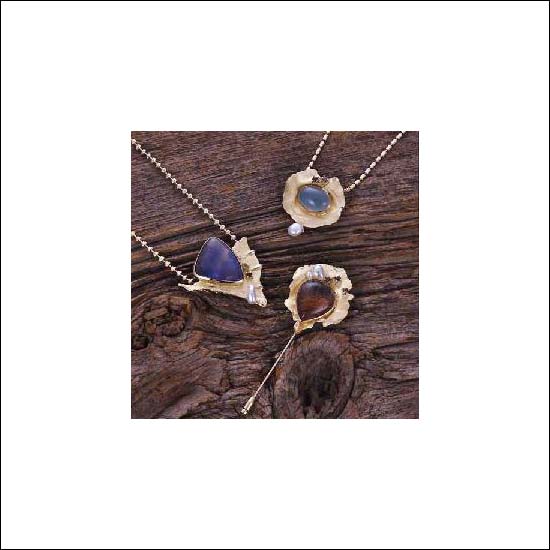 Opals mounted in golden/silvery rim and placed onto an irregular golden sheet