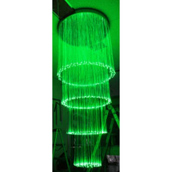 The company focuses on the design and installation of optical fiber lighting. The chandelier is made up with tiers of optic fibers that glow in green. It makes a nice and attention-grabbing piece for hotels, halls or lobbies.
