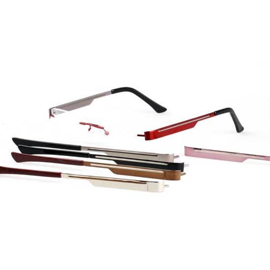 This is a series of rimless optical frames coming in different sheen colors. The temples feature a line on the top for a stylish contrasting look. There are metal frames, acetate frames and injection frames available for you selection.