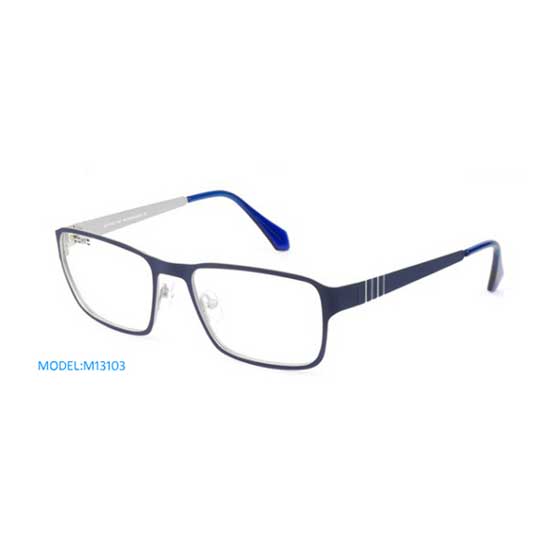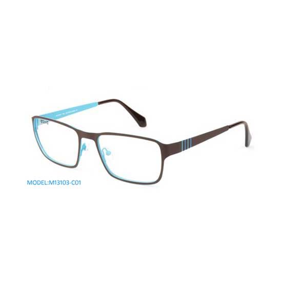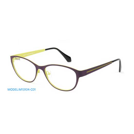 Displayed is an optical frame that comes in a fashionable design. Featuring fully lined rims, this frame has temples of moderate thickness. Made of metal, this frame is durable and lightweight.