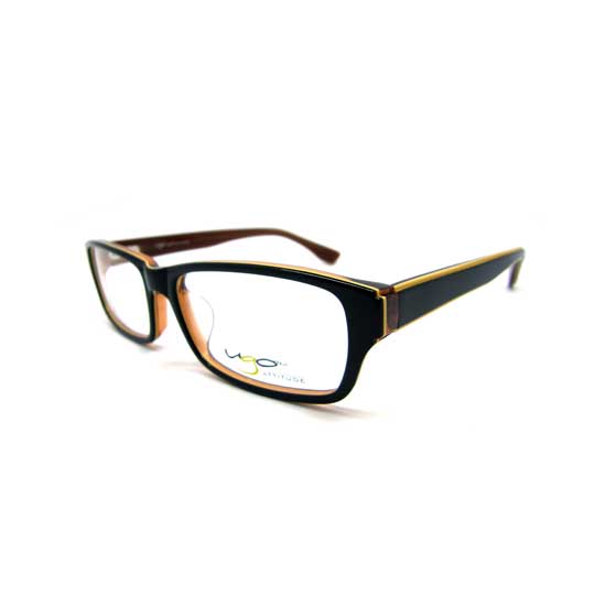 This full-rim optical frame features a black appearance with yellow and brownish highlights. It is durably made to withstand bumps and scratches. This fashionable optical frame is a great choice to update your look.