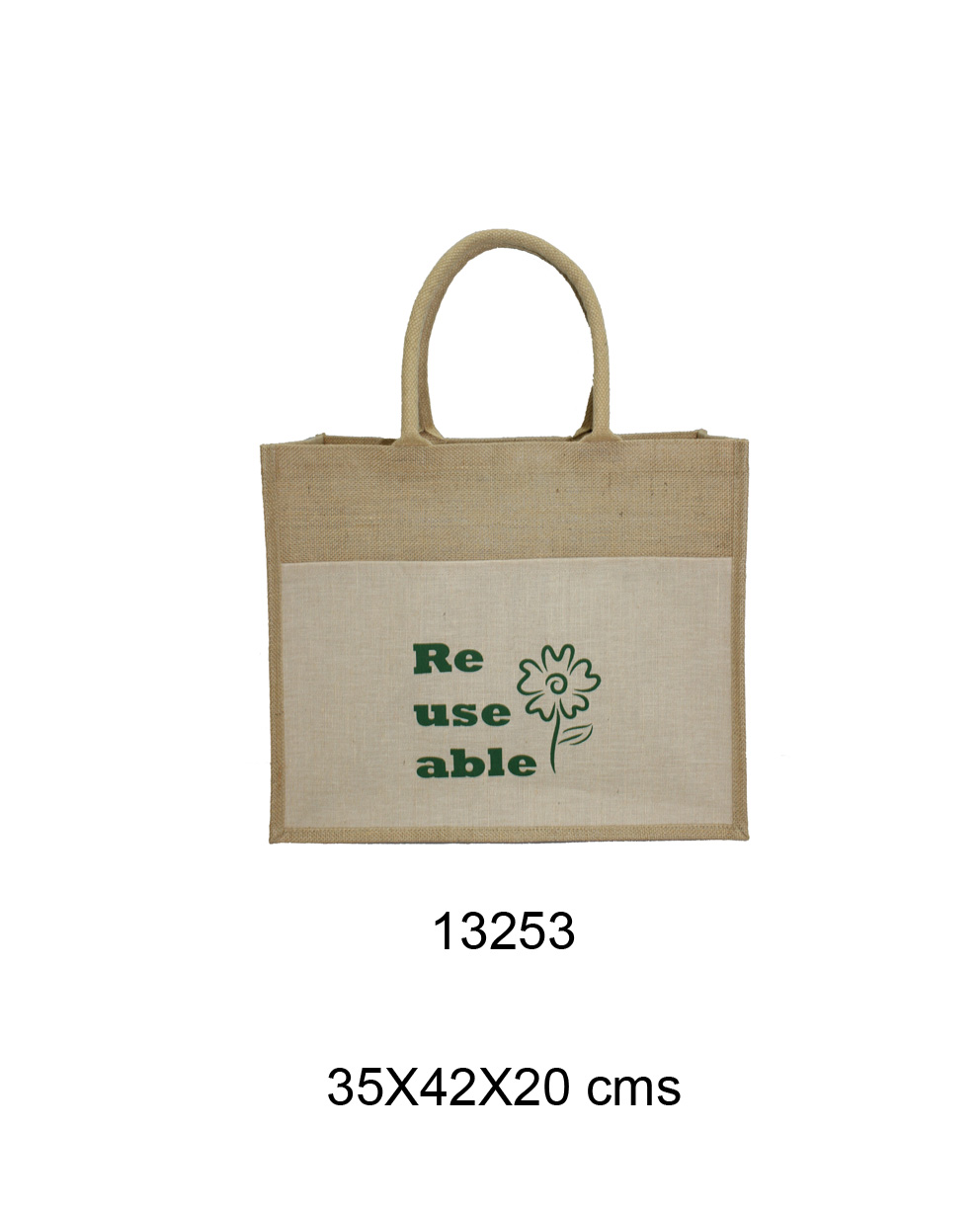 Natural Laminated Jute and Natural Laminated Juco with 50 CMS Rolled Tape Handles.