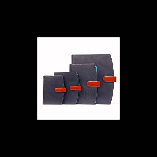 These organizers have black leather covers and a dark brown strap