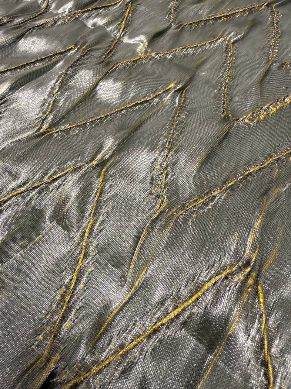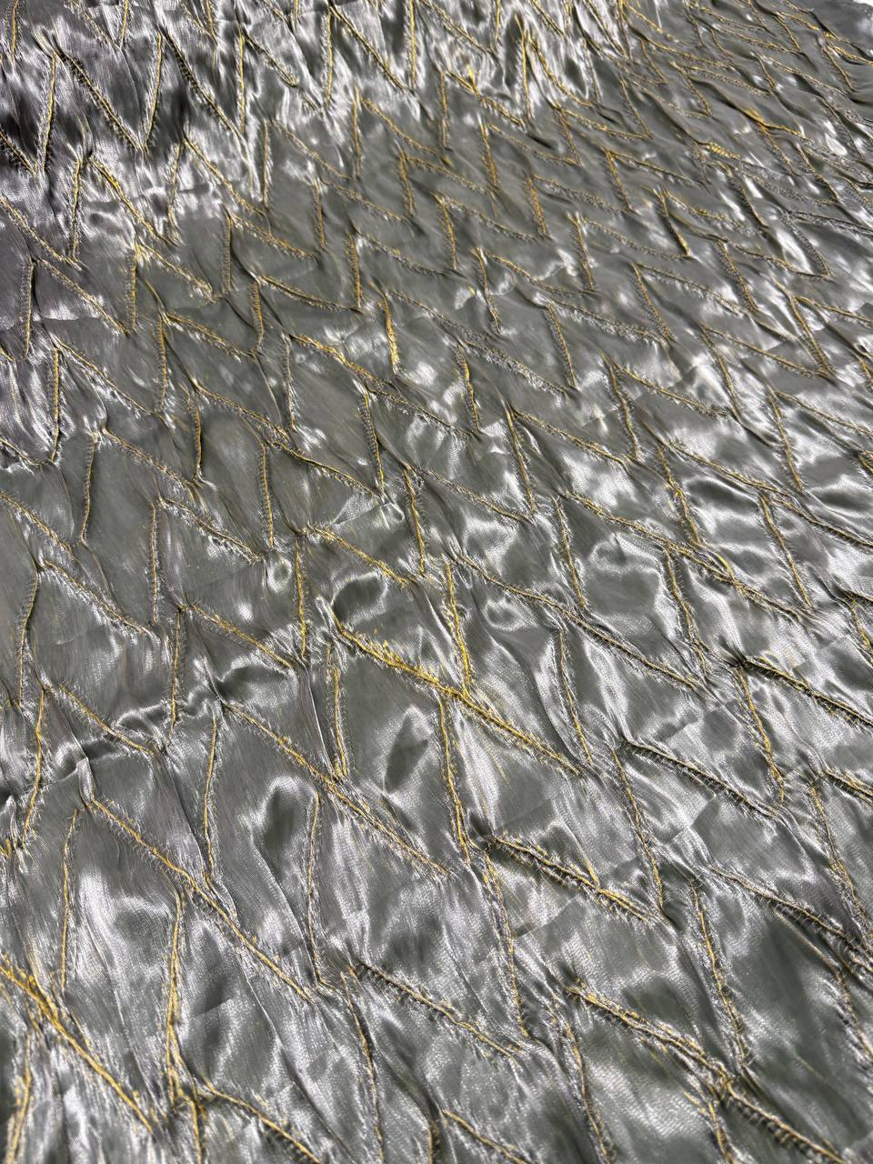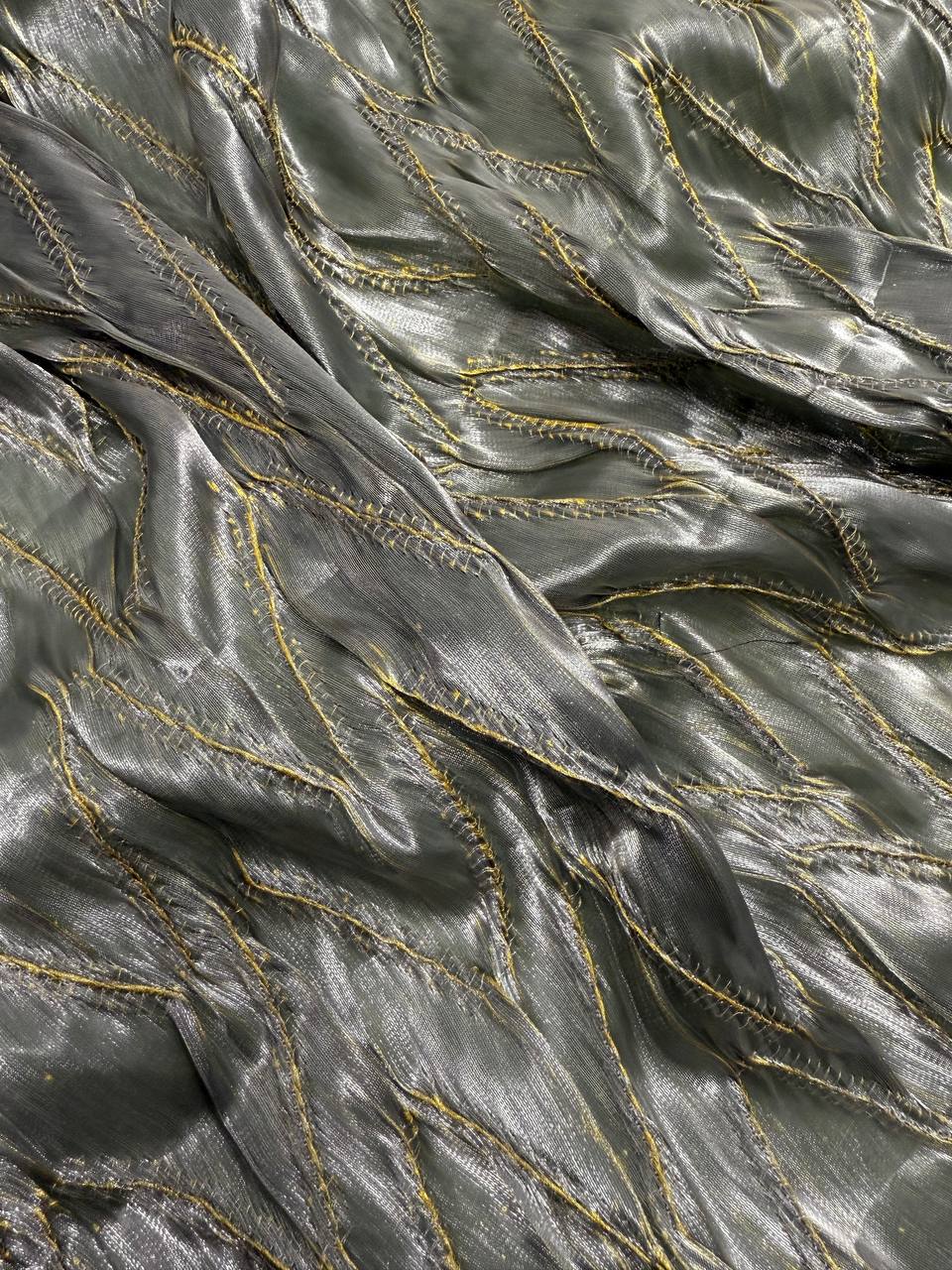 High-quality organza that captivates with its exquisite beauty and functionality. The material features a liquid steel effect, creating the illusion of fluidity and flexibility, making it ideal for crafting fashionable and stylish pieces. It is adorned with diamond-pattern embroidery, offering breathability and a pleasantly tactile feel.