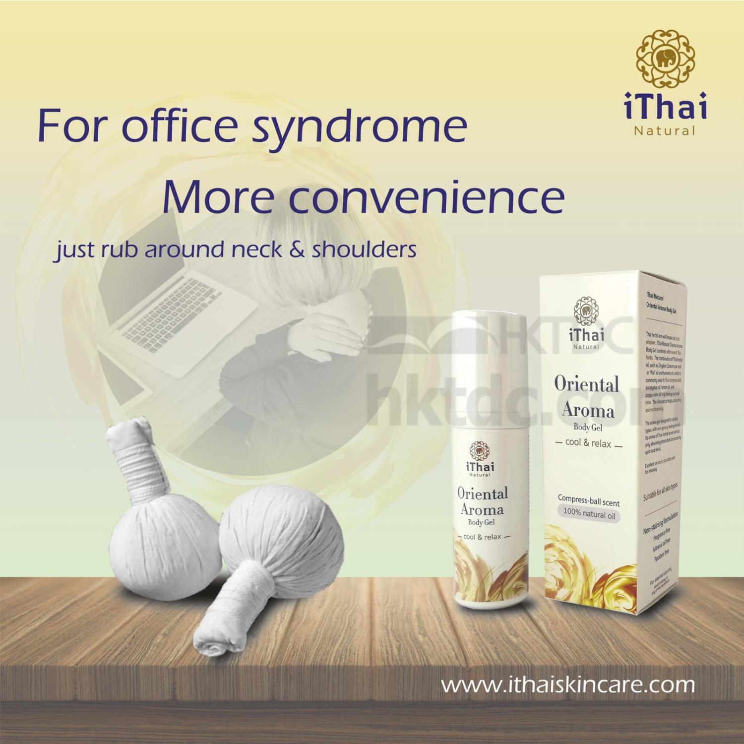 Oriental Aroma Neck and Shoulder Aromatherapy Massage Gel with Thai herbs & essential oils. The Oriental Aroma Body Gel, Herbal compress Ball Scent is suitable for office syndrome, stiffed neck from working on the computer for too long or for stress from works.