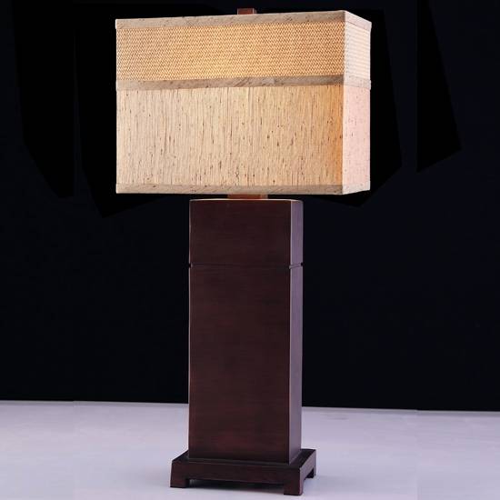 The oriental table lamp features a rectangular fabric shade in a hand-tailored construction. It comes with a wooden stand for long-lasting beauty. This fantastic table lamp is suitable for homes, hotels and more.