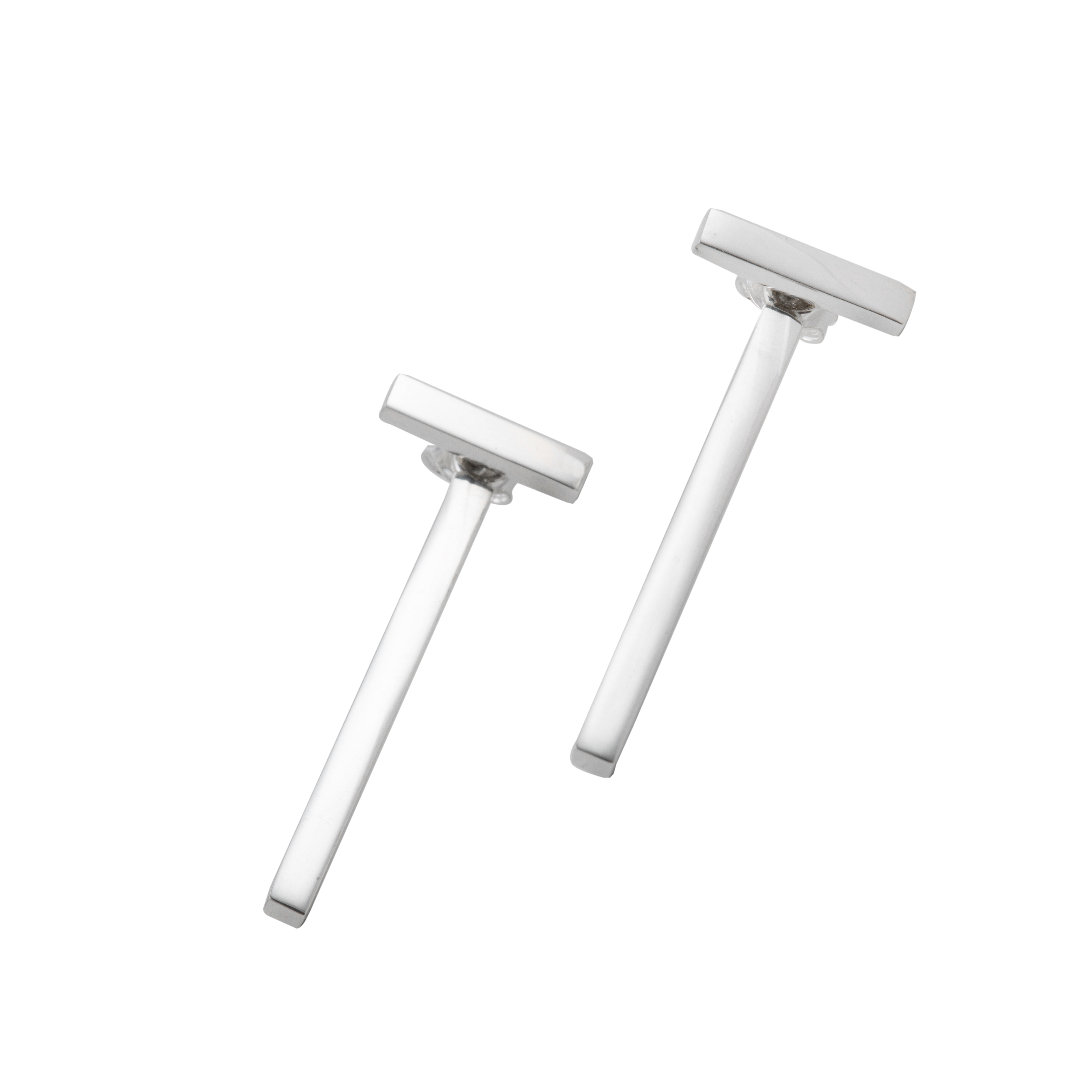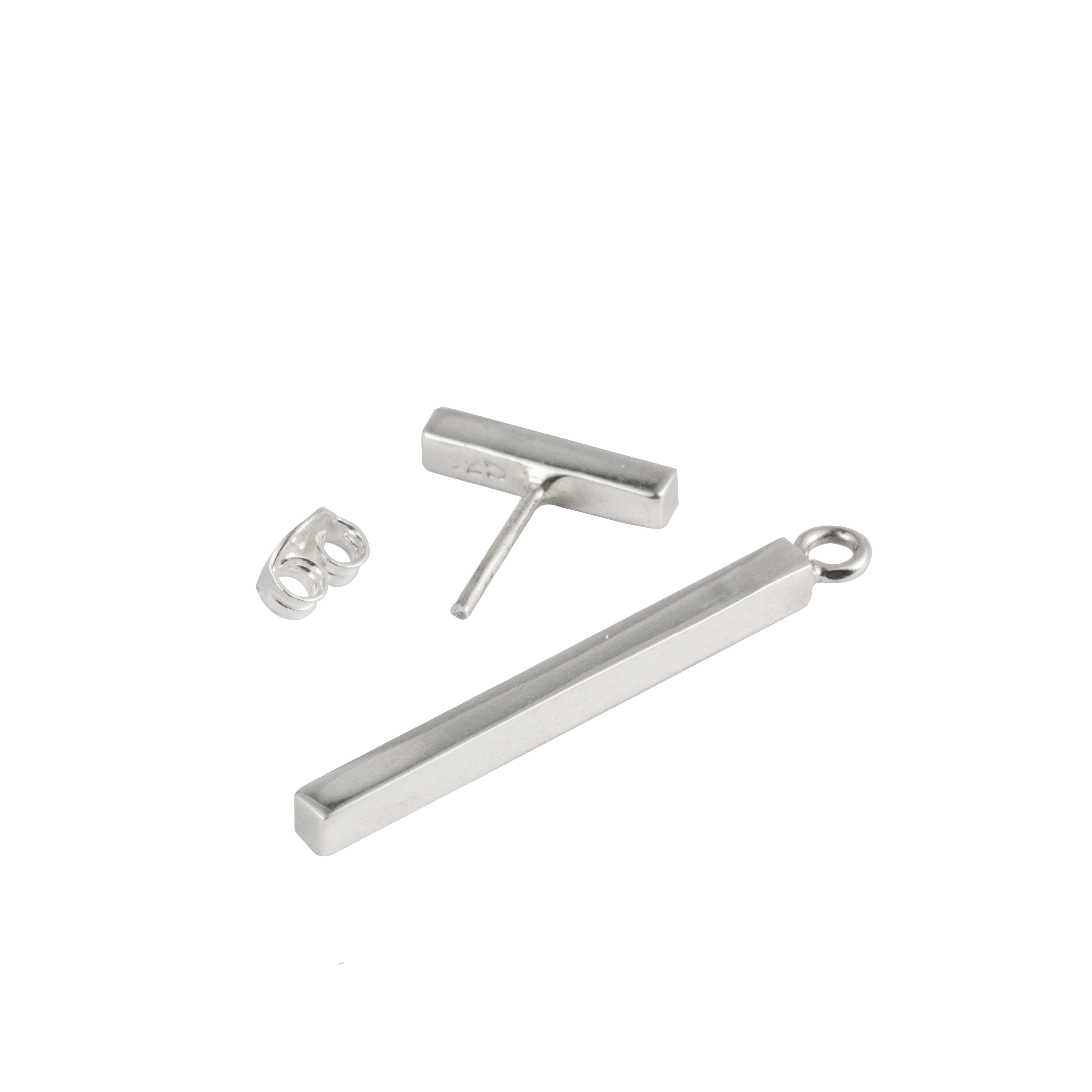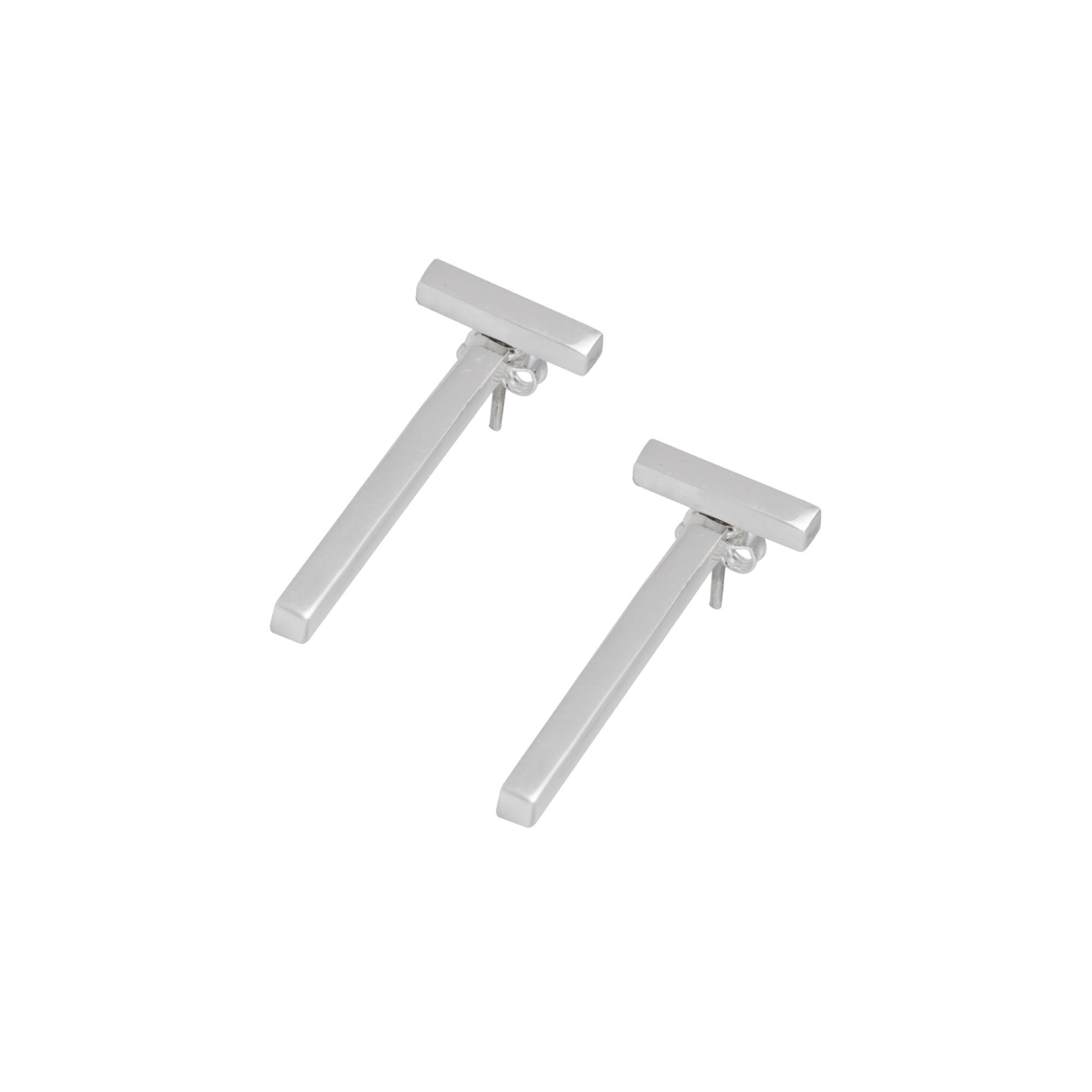 The earrings are a modern and elegant interpretation of geometric design. Their elongated and sleek structure highlights the beauty of clean lines and symmetry, evoking a avant-garde style with an architectural feel.