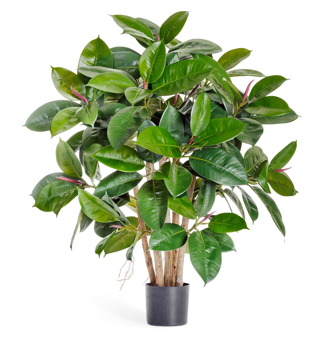 The mini rubber tree on a plastic base.
