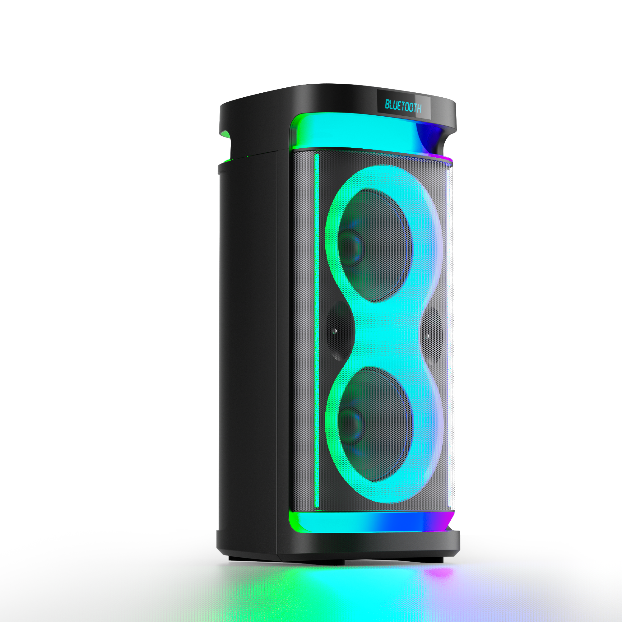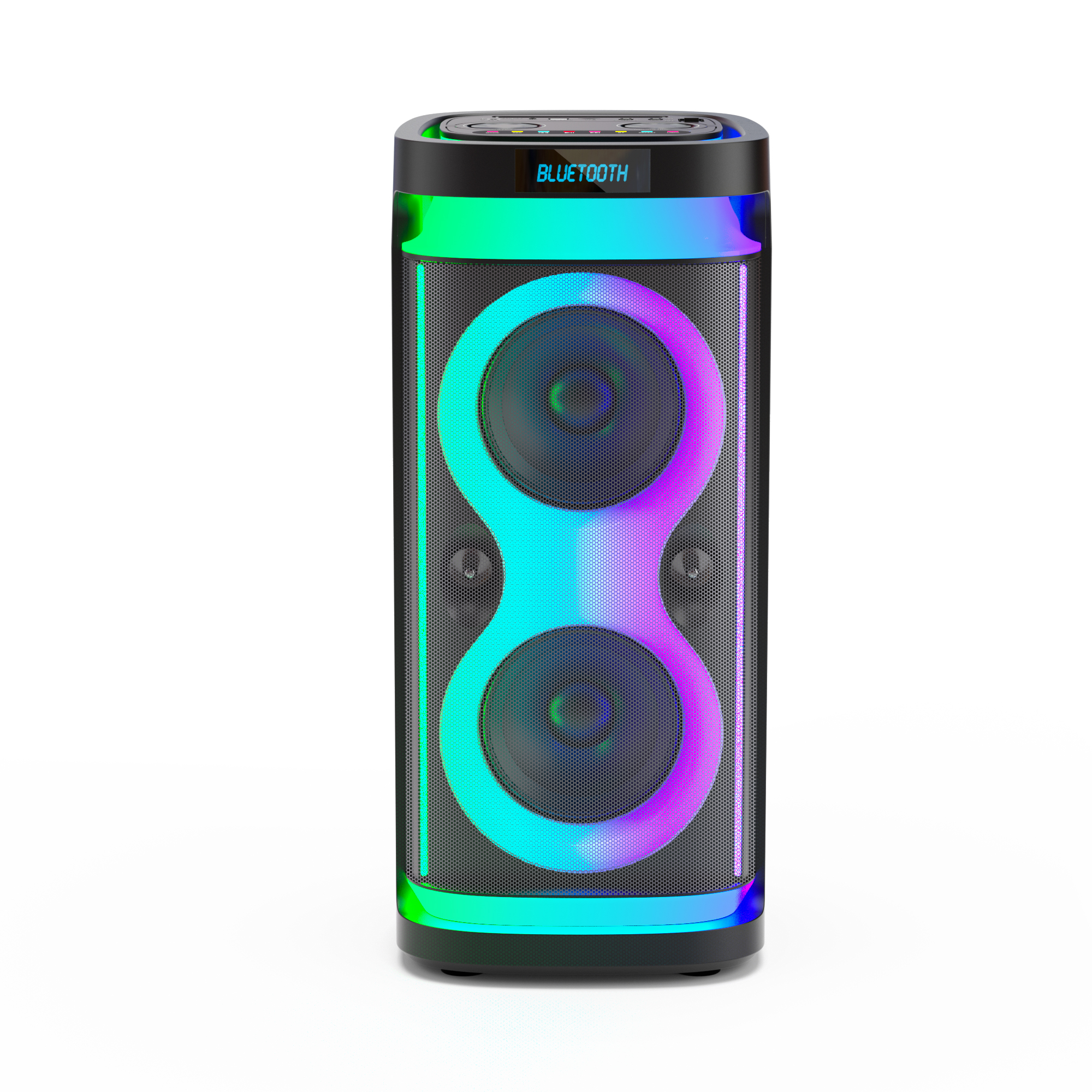 1. Function:BT 5.3+ EDR, AUX, USB, TF card, FM radio, dazzled lights, White LED display, wired or wireless Microphone connetction