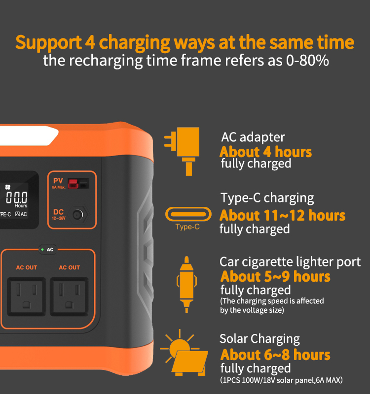 Outdoor energy storage power 300w 500w 600w 1000w portable power station solar generator