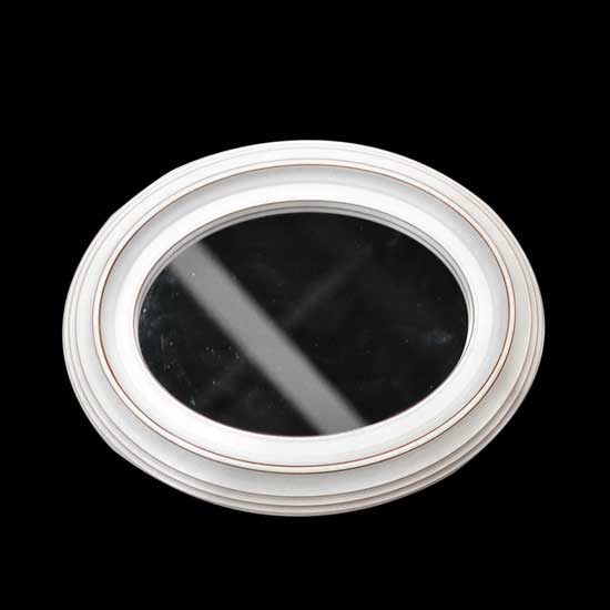 This oval-shaped mirror features a wooden frame in a white paint finish. It will provide a clear, distortion-free vision. The tasteful mirror will add an elegant touch to your home decor.