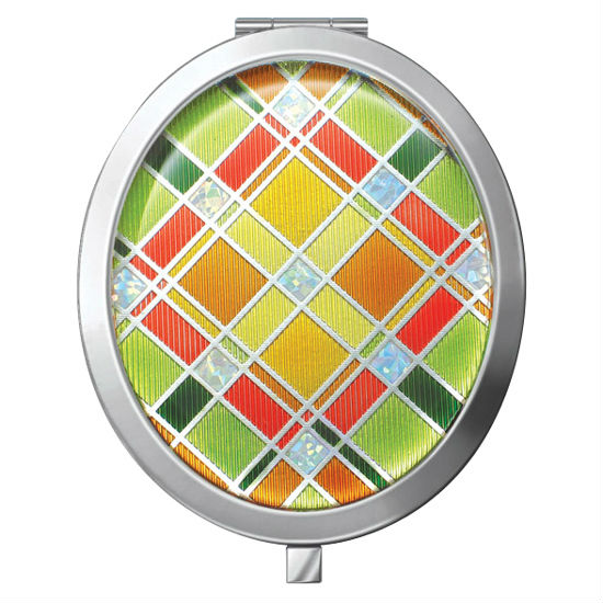 Oval shape. Colored pattern (tartans) with epoxy coating.
