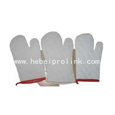 This displayed oven glove comes in an off-white hue. The rim is accented with an apple red hue for added style. The pure cotton construction makes it easy to wash and comfortable to use.