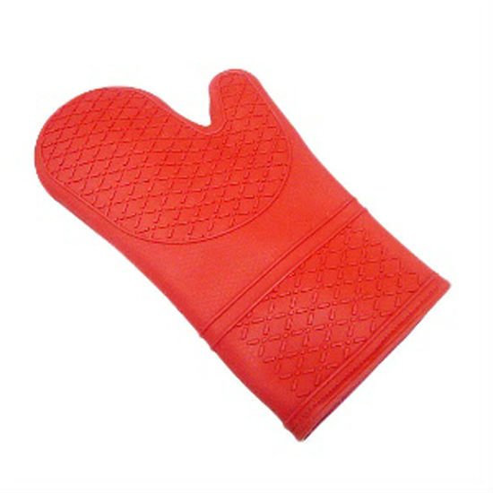 Showcased is a kitchen oven mitt made from highly heat resistant silicone for protecting your hands from heat. The mitt comes with raised patterns for a nonslip and secure grip. Padded with cotton and polyester, this mitt keeps your hands comfortable, and is perfect for handling hot plates and small pans.