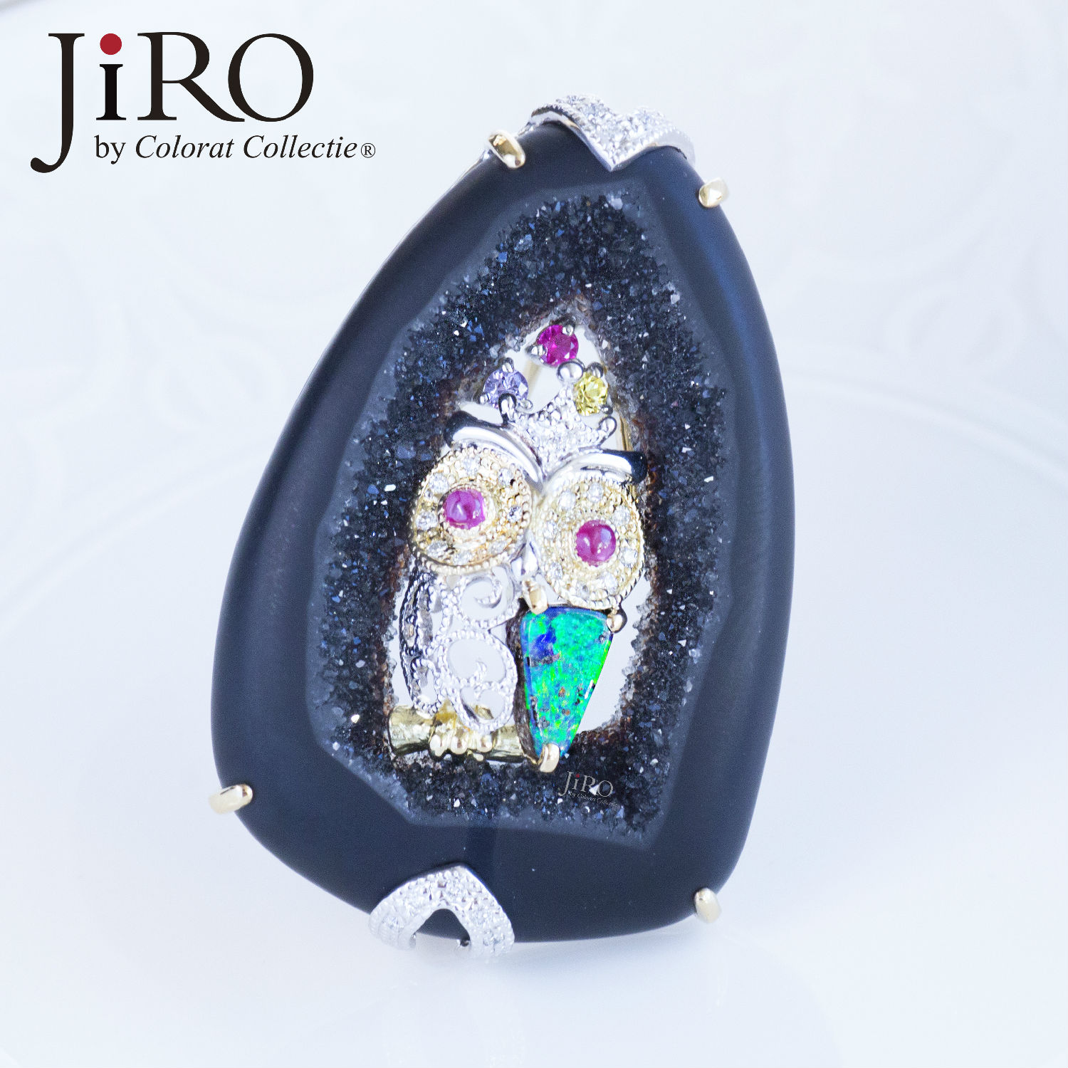 Boudler Opal 0.82ct Ruby 0.27ct Sapphire 0.10ct Diamond 0.15ct 18K Yellow Gold/White Gold