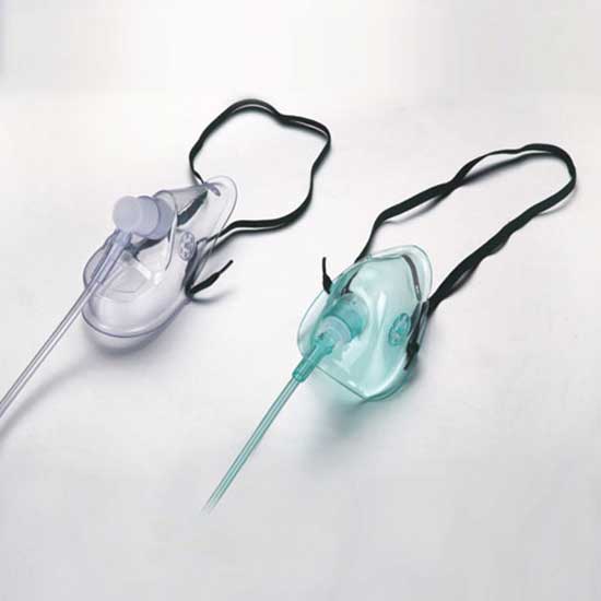 This functional oxygen mask provides a method to transfer breathing oxygen gas from a storage tank to the lungs. The mask is made of medical-grade PVC material for safe and reliable use. It is fitted with an elastic strap for comfortable and flexible wearing.