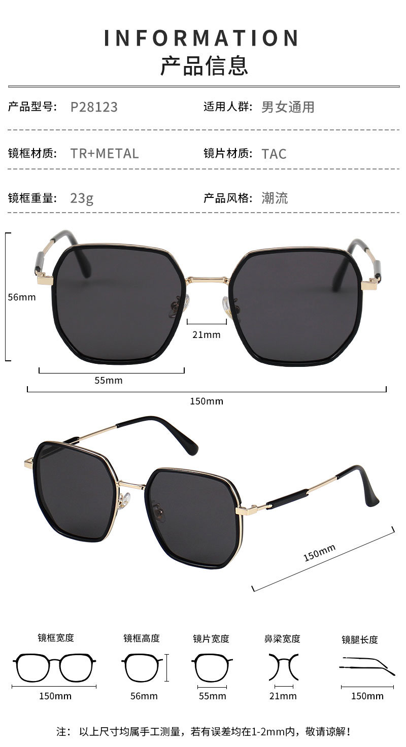 Weight: Only 23g(Without lens), comfortable without pressure, suitable for face.