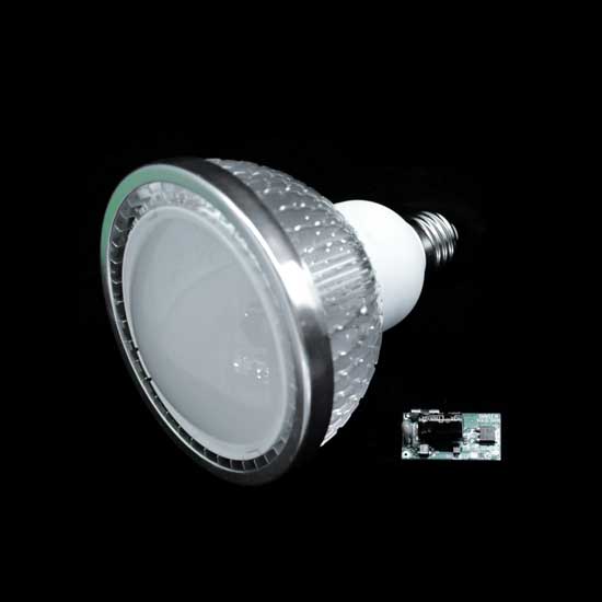 This PAR38 LED bulb features a cup-shaped metal housing and a white diffuser. The high-power LED bulb boasts superior lighting performance and a long lifespan. It is designed with a screw base for easy installation.