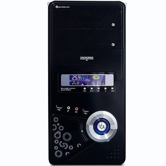 The black PC casing bestows a revolutionary LCD screen on the front, showing you information of the computer's statuses. The cooling fan guarantees an extended life of the computer by preventing overheating of the electronic components within the casing. It is equipped with 3 hard disk drive bays for flexible and versatile use.