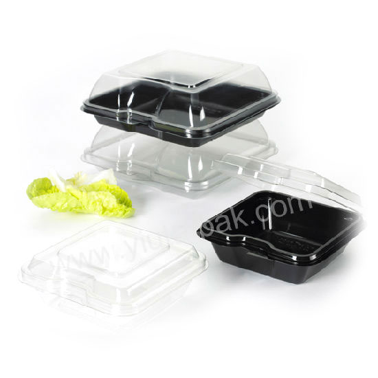 This is a food container made of food-grade PET material. It comes with a transparent cover for people to see the internal food without opening it. This item is a practical choice for assorted locations.