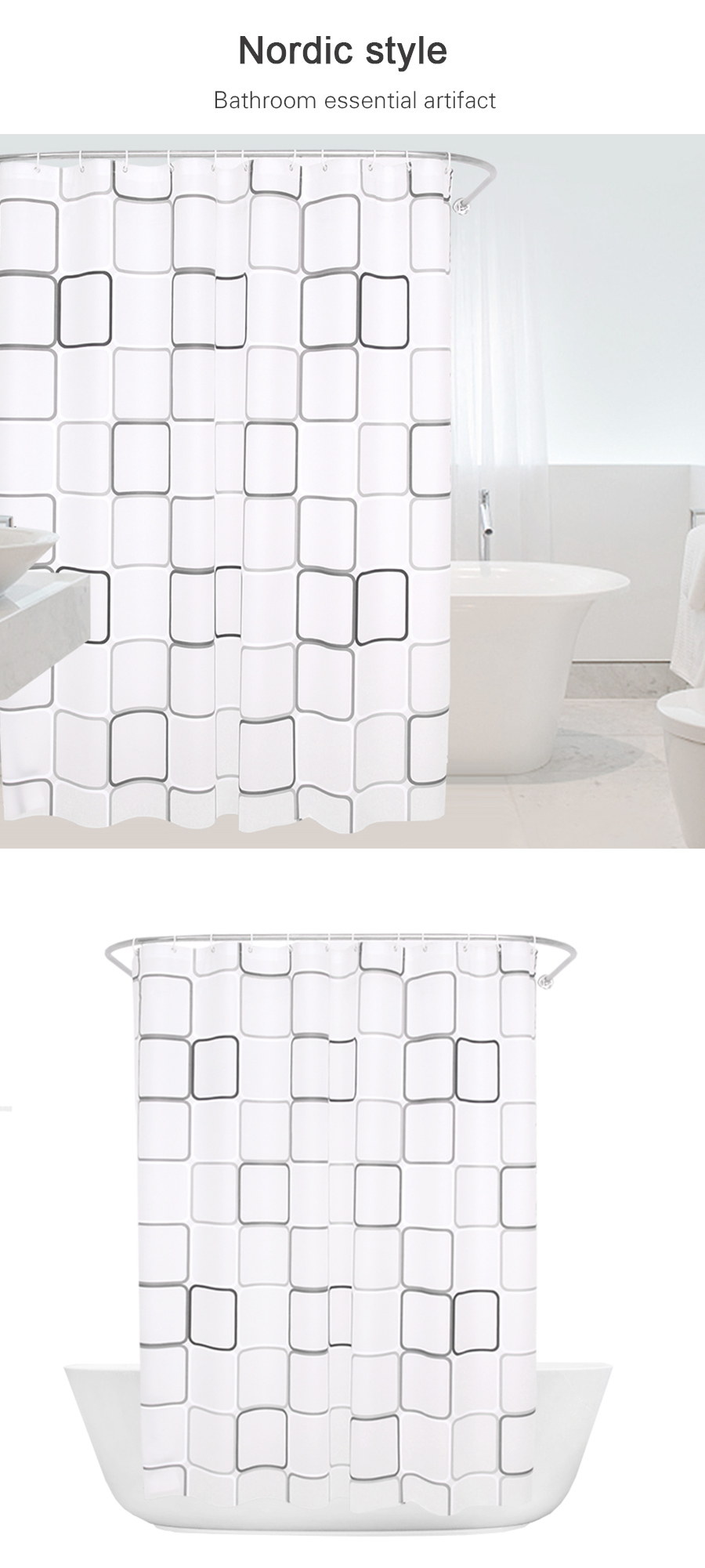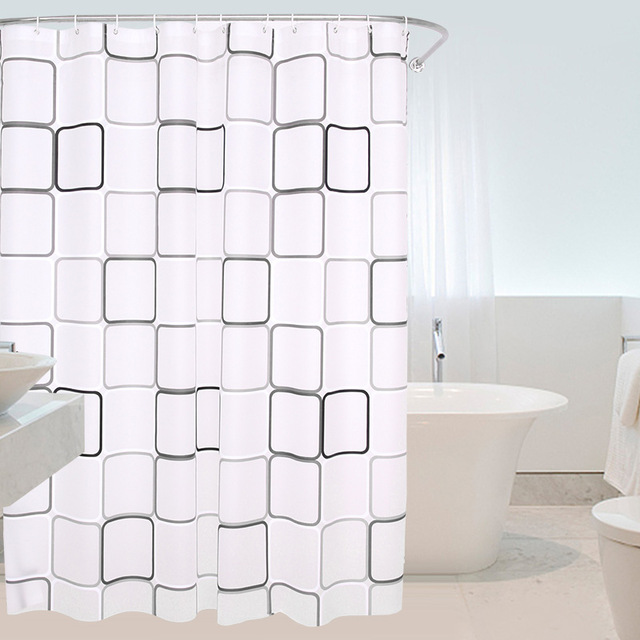 PEVA White Square Thick Shower Curtain With Hooks Waterproof Mildew Resistant Bath Curtain Durable High Quality Bathroom Curtain