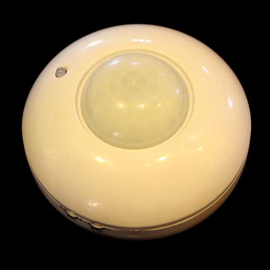 This ceiling sensor features a passive infrared sensor that detects users' presence. It can be used with electrical appliances such as lighting. This sensor effectively reduces energy wastage.