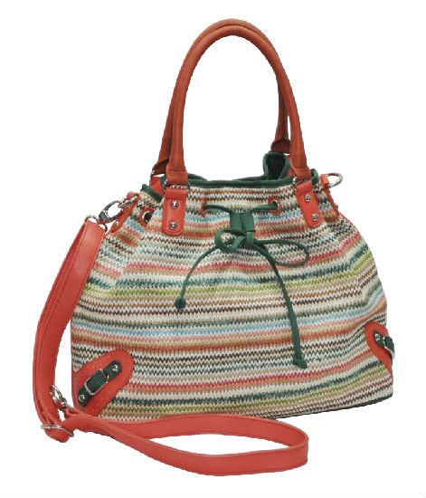 PP straw bag with shoulder strap.