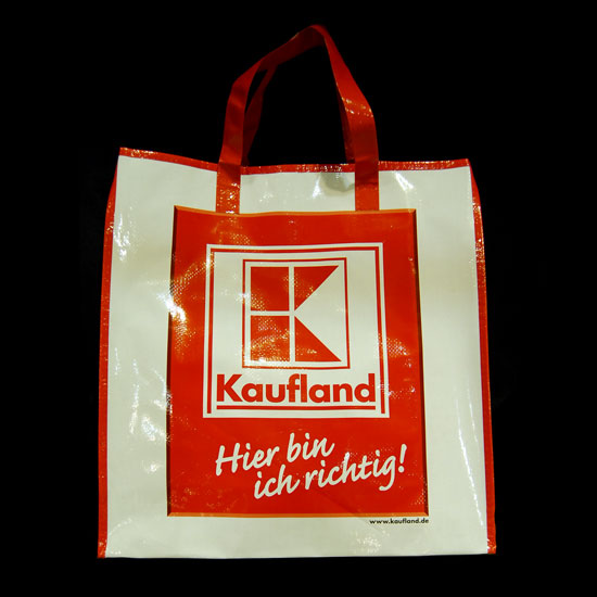 This displayed shopping bag comes with red and white hues for an eye-catching look. Made of PP material, the shopping bag promises long time using. This stout PP woven shopping bag is recyclable for protecting the environment.
