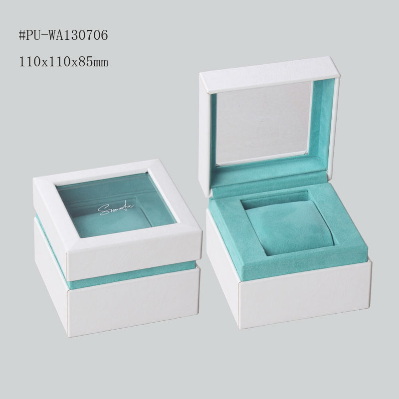 Smooth surface sythetic leather, window top with logo print. Finest look would match up your product.