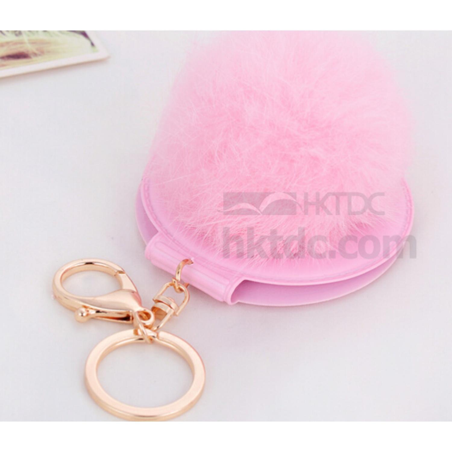 Pink Color PU/Leather Mirror Case with Pompom