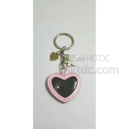 PU Heart Shape Photo Frame Keychain with Metal Charms