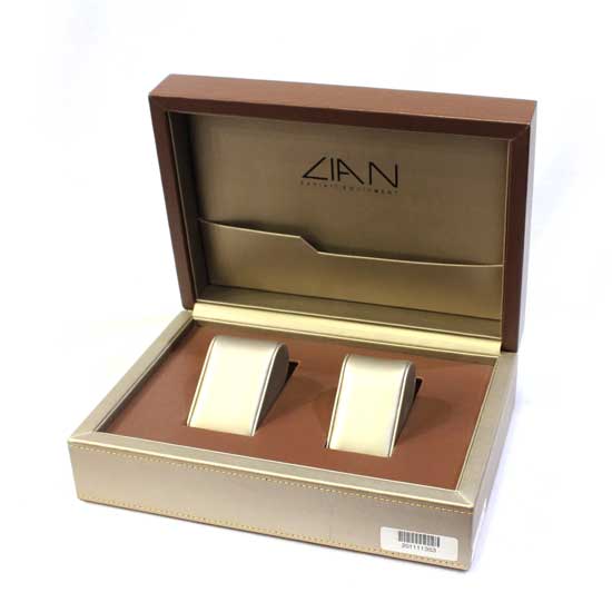 This charming PU watch box is designed with a brown cover and a pale golden color bottom. The delicate rectangular watch box can hold up to two watches. The interior of the cover is designed with an extra pocket for users' convenience.