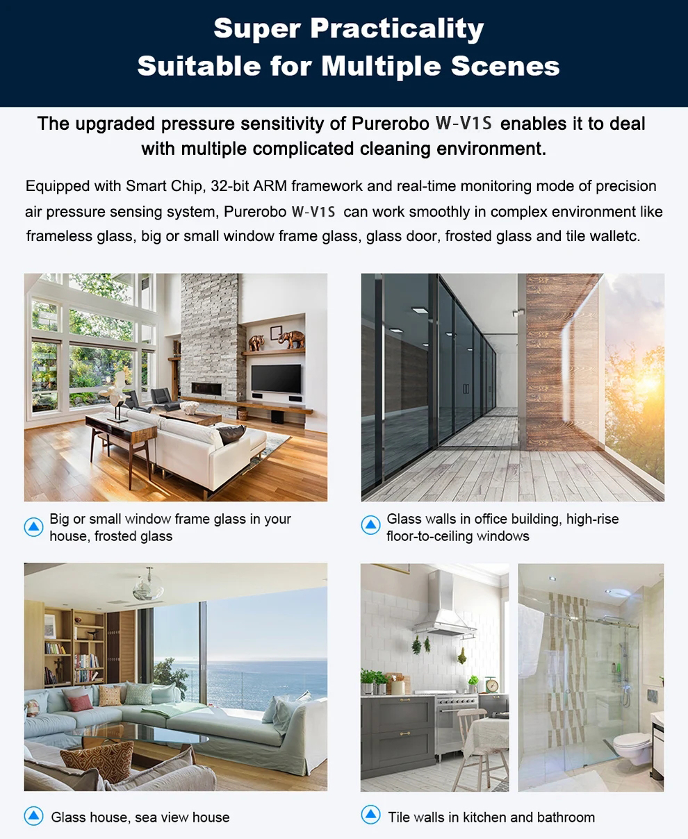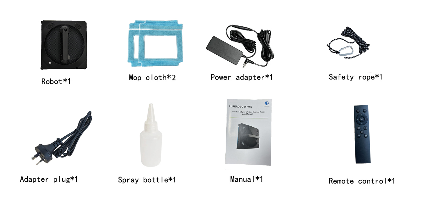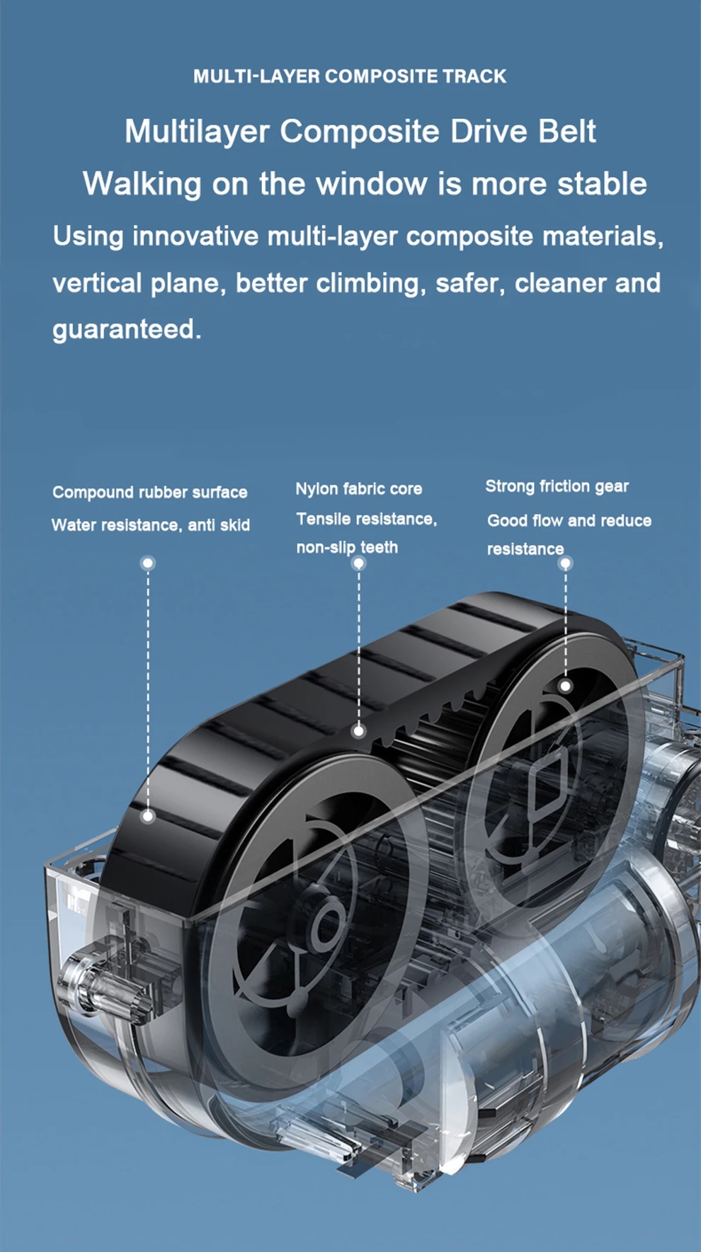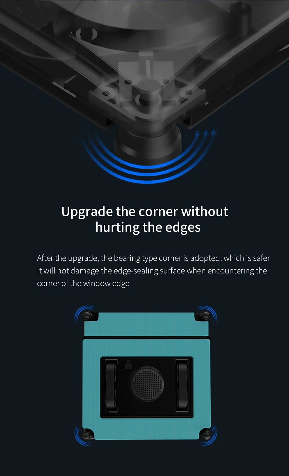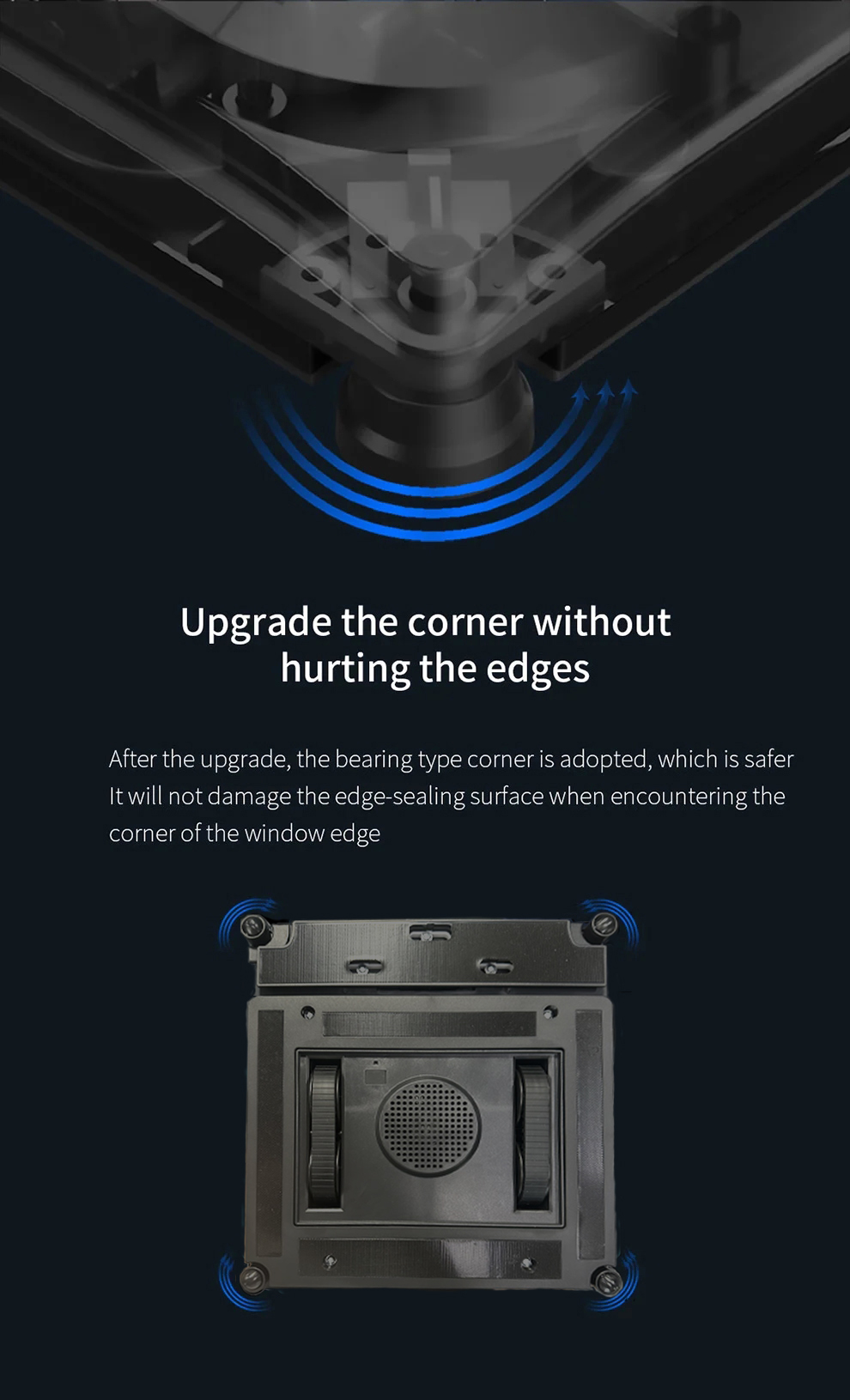 1. Cleaning all kinds of smooth surfaces, including glass, flooring, tiles, marble, etc. 2. Smooth moving mopping pad, remove stains and dirt easier 3. Light indicator and buzzer alarming 4. Automatic return to the bottom point after finished cleaning 5. Repeat cleaning dirty area 6. 4 gap detection sensors ensure frameless window cleaning 7. 4 meters Safty rope double ensure a safe cleaning 8. Zig-Zag cleaning path “N” or “Z” modes and deep cleaning mode"Z/N" 9. AI algorithm with multiple sensors for intelligent obstacle avoidance 10. With an uninterruptible UPS system, keep working for 30 minutes after power-off 11. TUYA Smart APP control, better IOT experience 12. Vibration mopping |