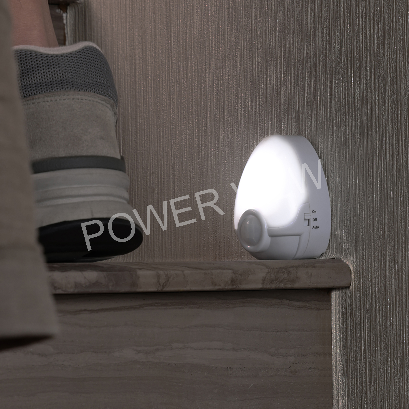 Turns on automatically when someone approaches nearby in dark and shuts off when leaving.
