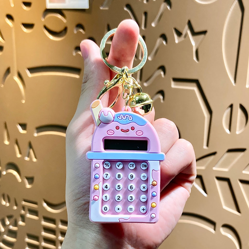 PVC Cute Milkshake Cup-shaped Mini Maze Calculator Keychain includes the following features :