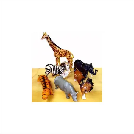 The toy animals include elephant, tiger, zebra, lion, hippo and giraffe