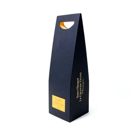 The featured packaging box features a rectangular tower design which gradually tapers upwards. It boasts eye-catching golden prints about precious wine details on the surface and has cutout handles on top for easy carrying. This dainty box presents a perfect bottle for your groomsmen, bridesmaids and anyone else who helped in your wedding party.