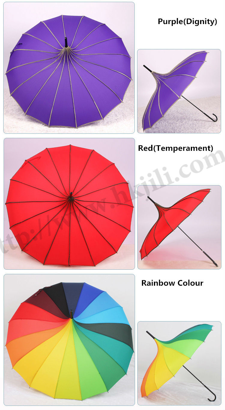 Size: 22''x 16K Straight manual open,PAGODA Umbrella, Dia approx 92cm when open, Arc 112 cm, Length Approx 84.5 cm when closed Frame:
