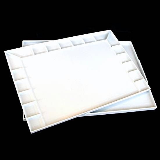 The painting palette showcases a simple rectangular design. The extensive amount of 19 wells let you blend different paint colors with convenience. The PP construction makes it easy to clean. This plastic palette is an essential for creating your masterpiece.
