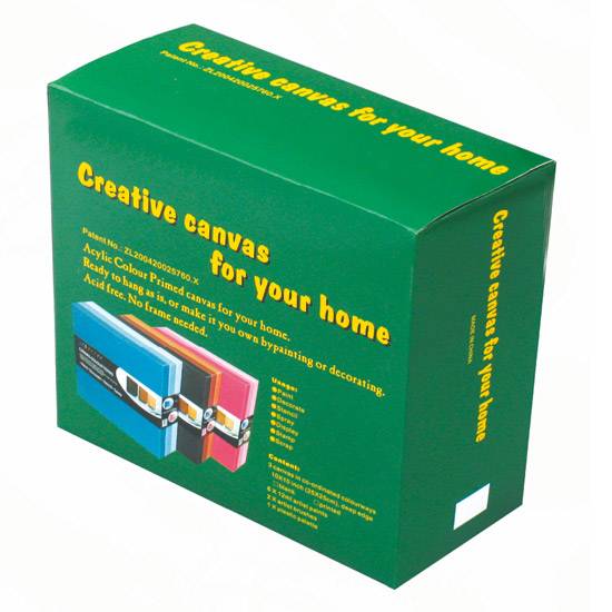 The featured item is a painting canvas box set for home decoration. The set includes 3 pieces of canvas, paint and painting brushes.