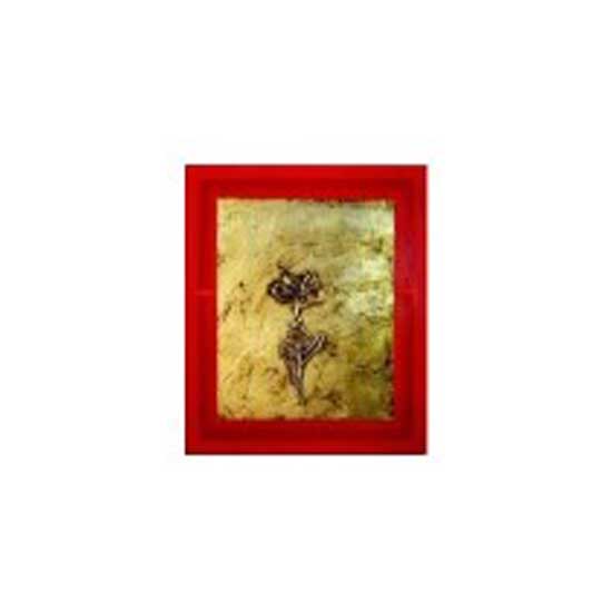 Featured here is a painting decoration with an abstract design that is aesthetically appealing. The reddish frame helps create a contrast of color palette. Enhance your living room in style with this artistic painting.