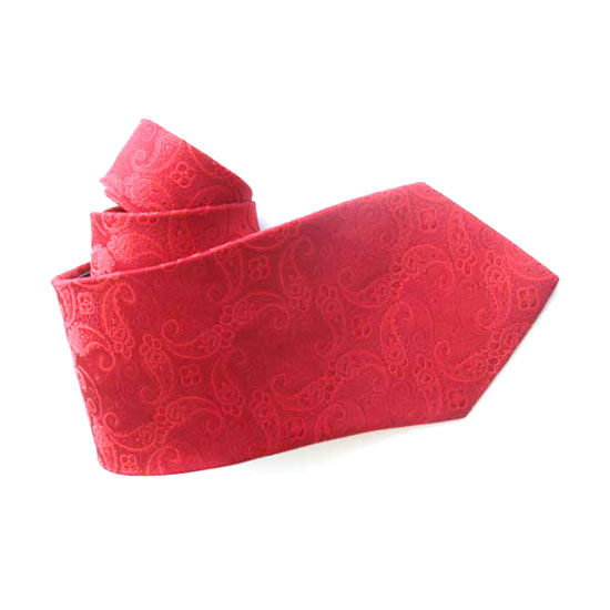 Presented here is a high-quality necktie in bright red color. This fine necktie features subtle elegant paisley patterns. It certainly lends extra assertiveness to the wearer.